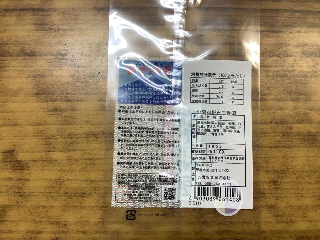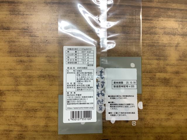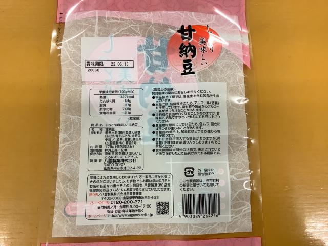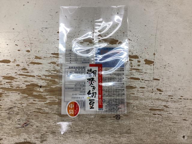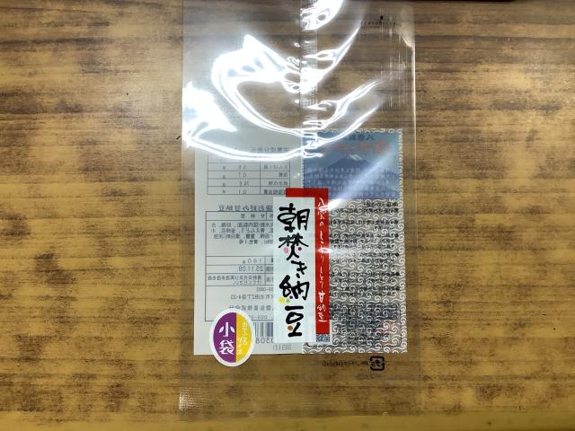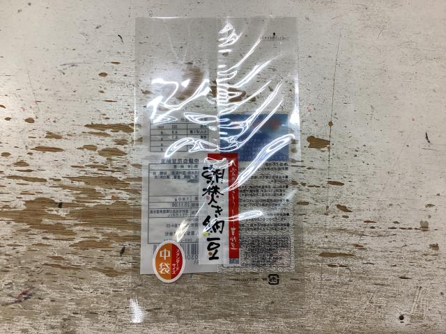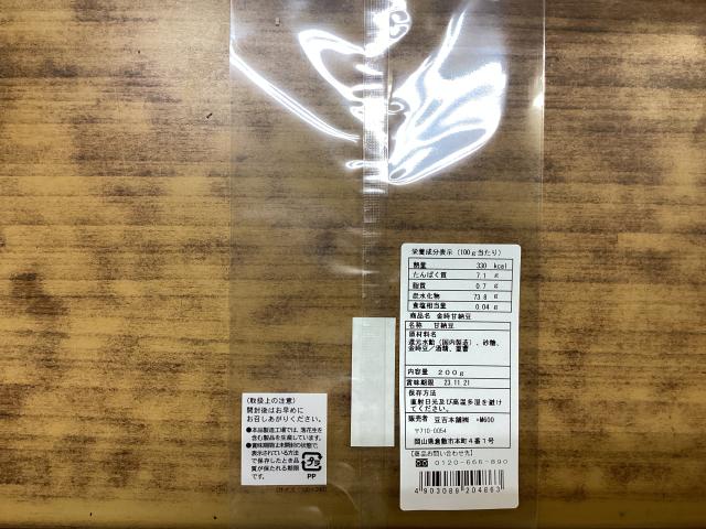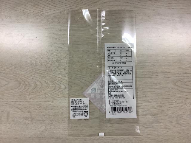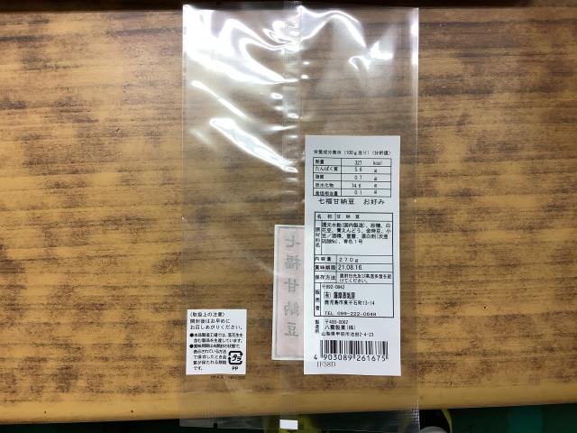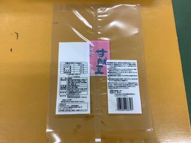 袋の表に七福甘納豆シールを貼る。