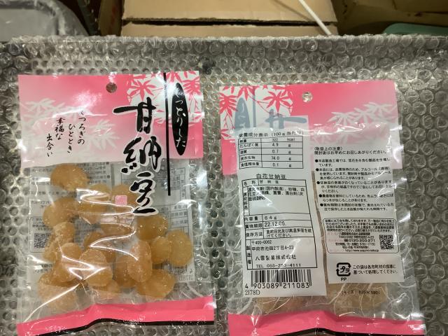 (分類:甘納豆/規格:100均一/形態:平袋 合掌)