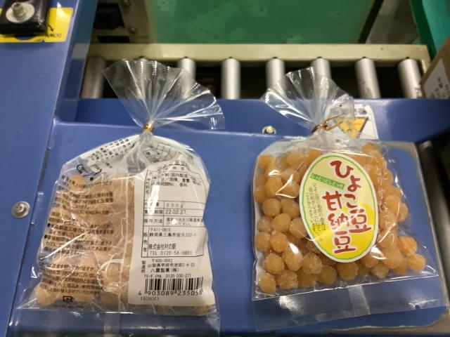 (分類:甘納豆/規格:みやげシール/形態:キンチャク)