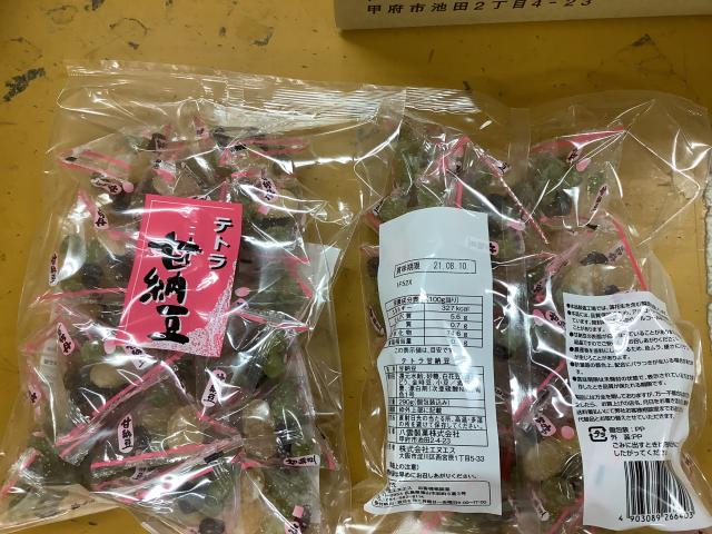 (分類:甘納豆/規格:F&Vテトラ/形態:平袋 合掌)