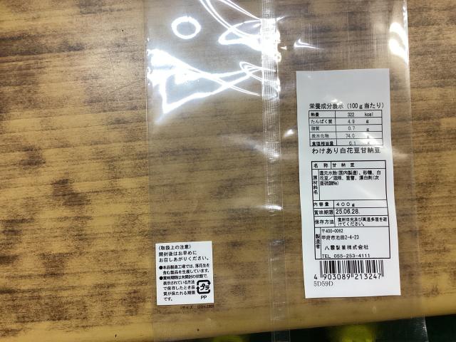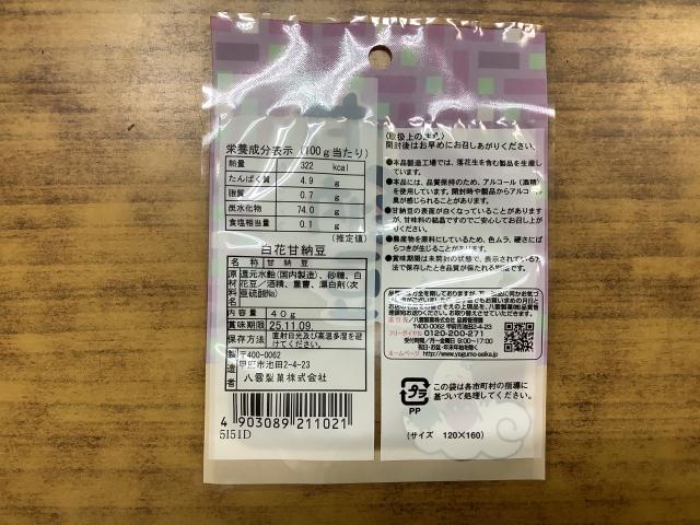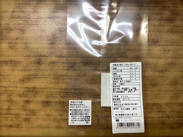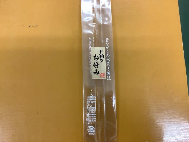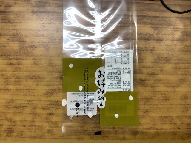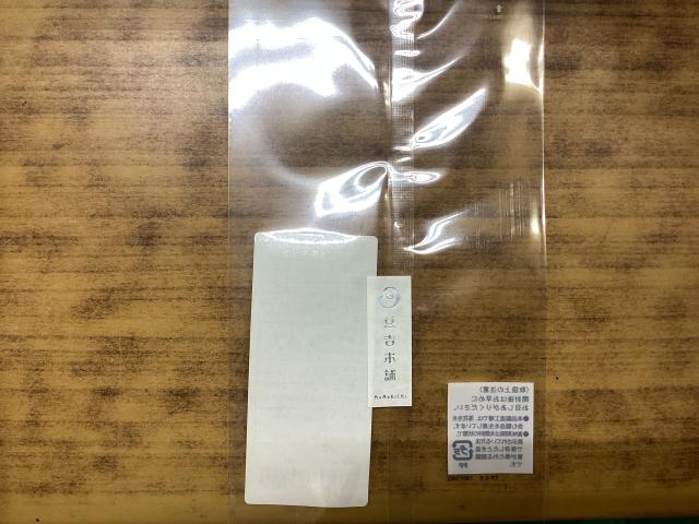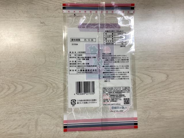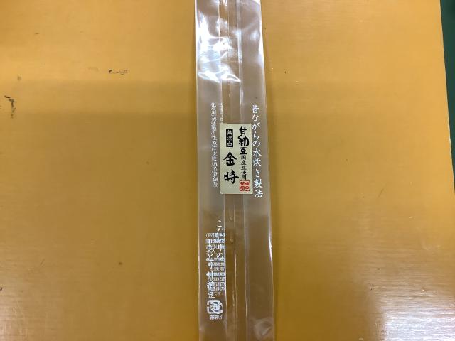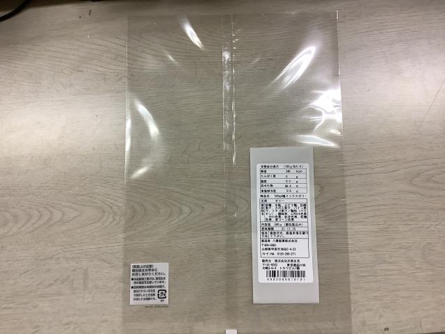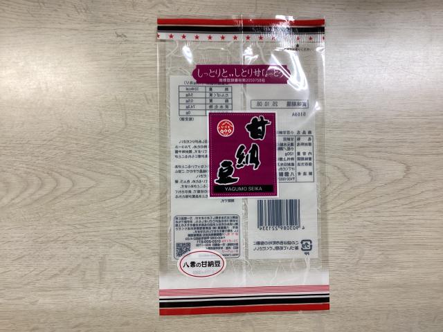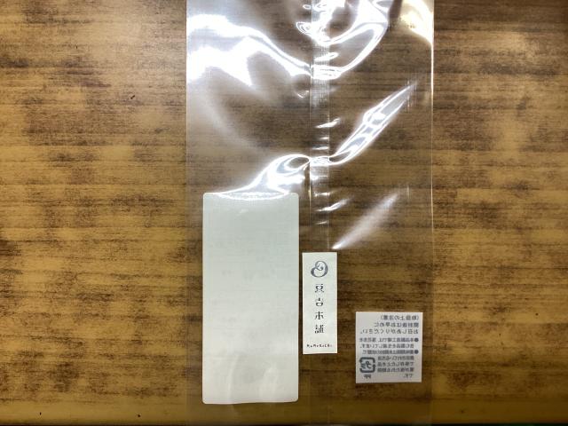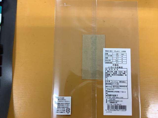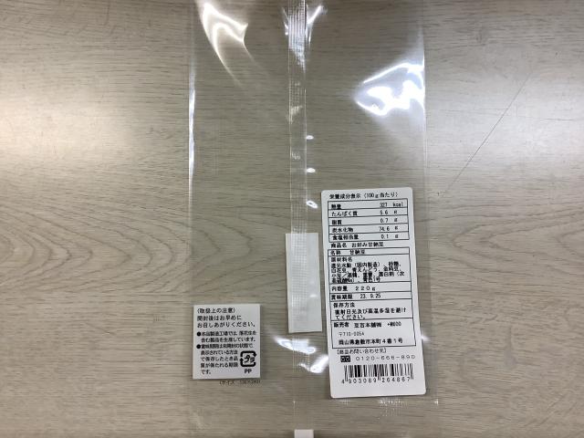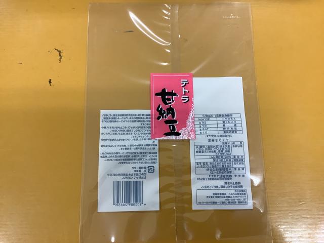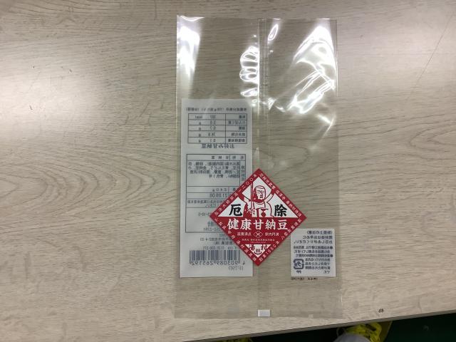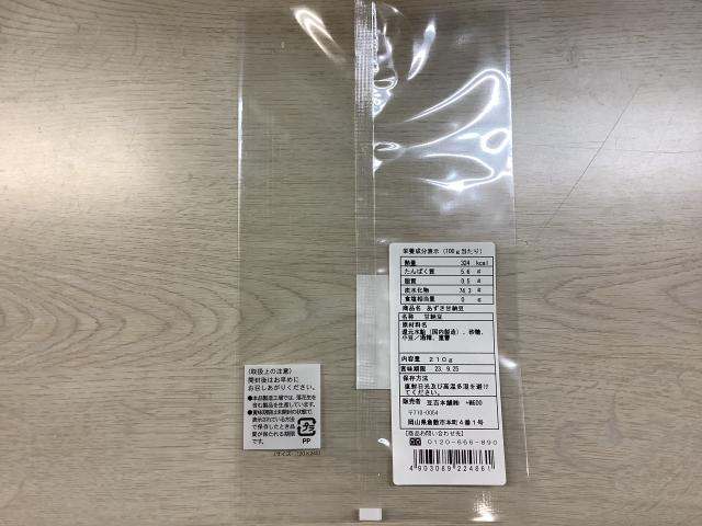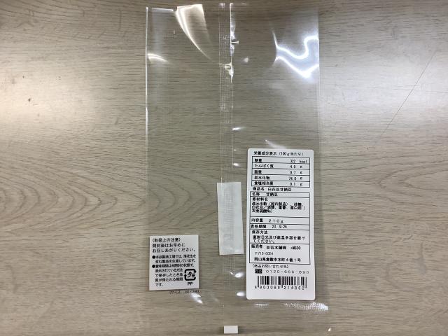 袋の表に七福甘納豆シールを貼る。