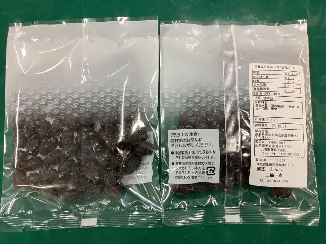 (分類:甘納豆/規格:とんぼ/形態:平 袋)
