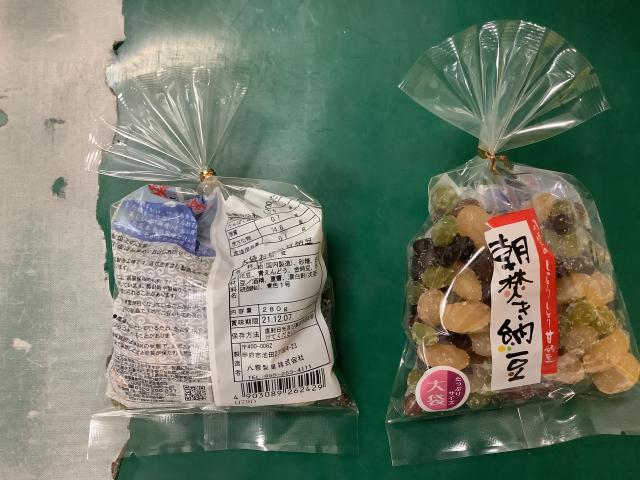 (分類:甘納豆/規格:大袋朝焚き/形態:キンチャク)