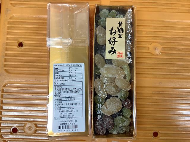 (分類:甘納豆/規格:味の花壇/形態:折 箱)